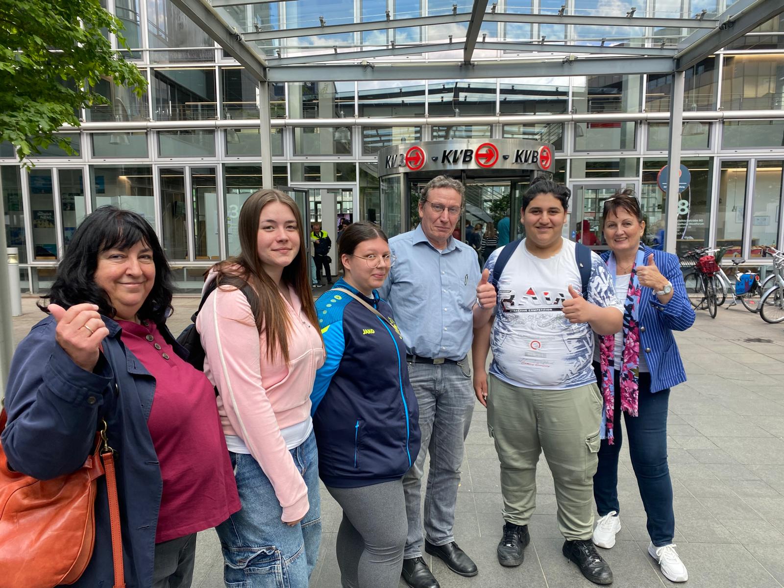 Dem Aufruf der KVB an alle Kölner Schulen, einen E-Bus kreativ zu gestalten, ist auch der Kunstkurs der Klasse 10A1 unter Leitung ihrer Kunstlehrerin Sabine Hilbig gefolgt. In Anlehnung an das Motto „Lieblingsorte in Köln“ gewann die Busgestaltung mit den bekannten Liebesschlössern an der Hohenzollernbrücke vor der Kölner Skyline den 3. Platz.