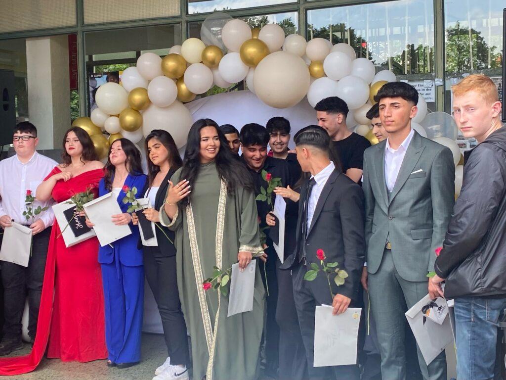 Eine letzte gemeinsame Feier nach sechs Jahren Lernen, Lachen, Ausdauer, Ausflügen und Klassenfahrten gab es am Freitag, dem 14.06.24. Stolz nahmen die SchülerInnen unserer drei Abschlussklassen 10 nach emotionalen Reden ihre Zeugnisse entgegen und gehen ab sofort neue Lebenswege, die meisten in eine Berufsausbildung oder auf die verschiedensten Berufskollegs. Wie werden sie vermissen und wünschen ihnen ganz viel Freude und Erfolg!