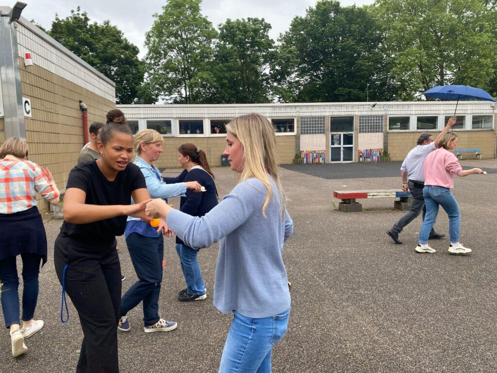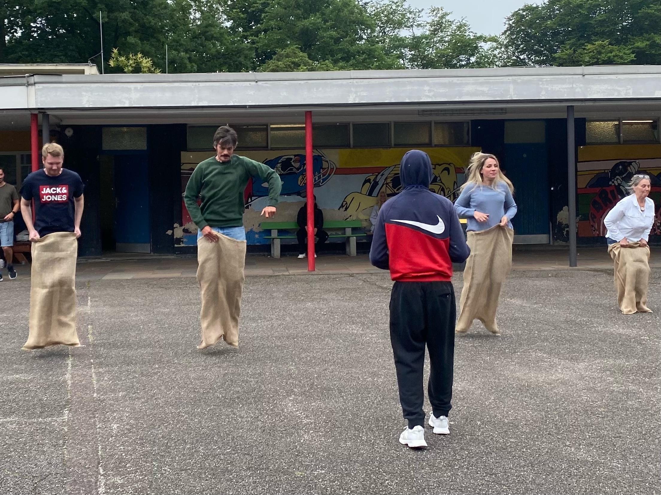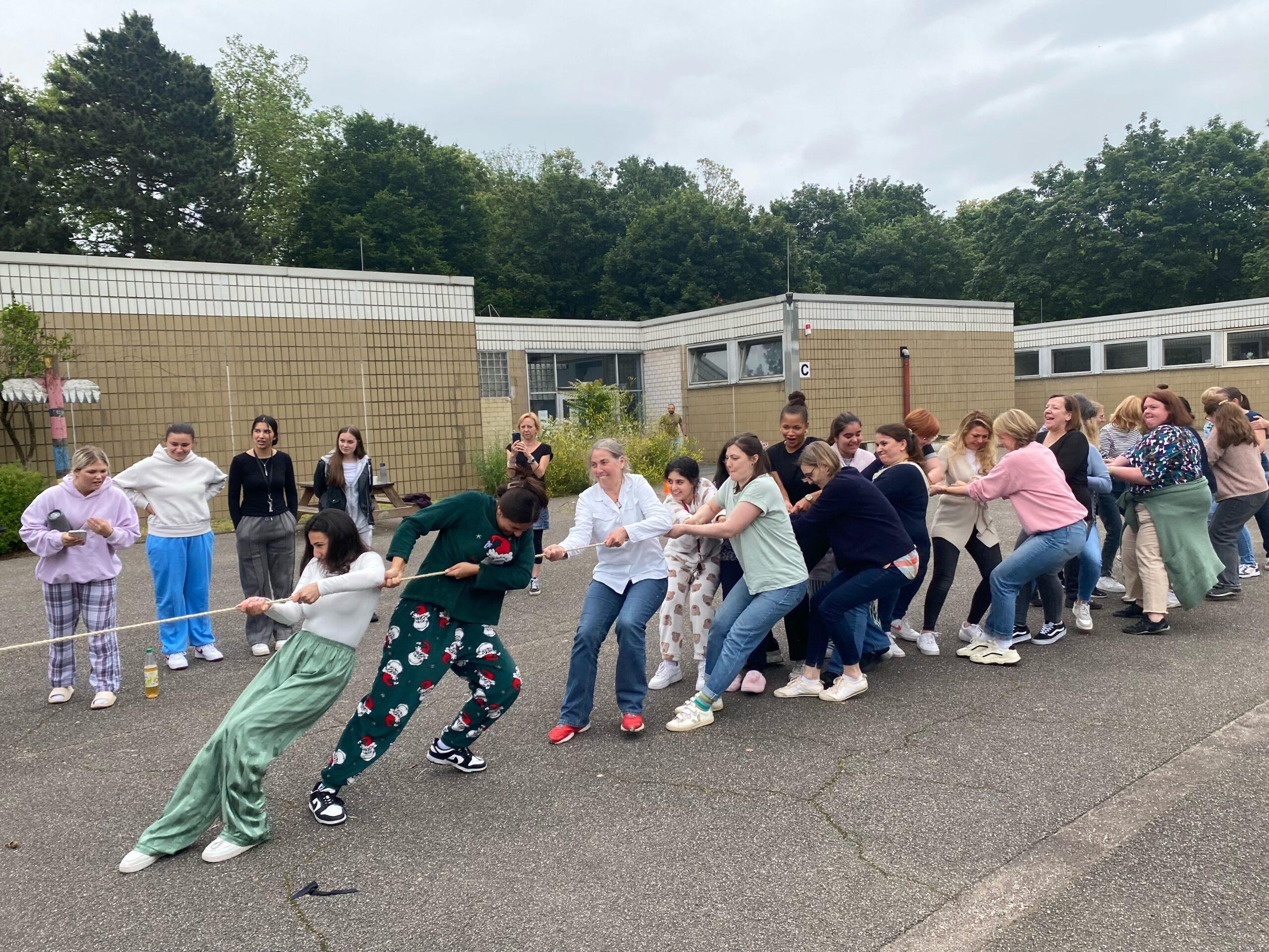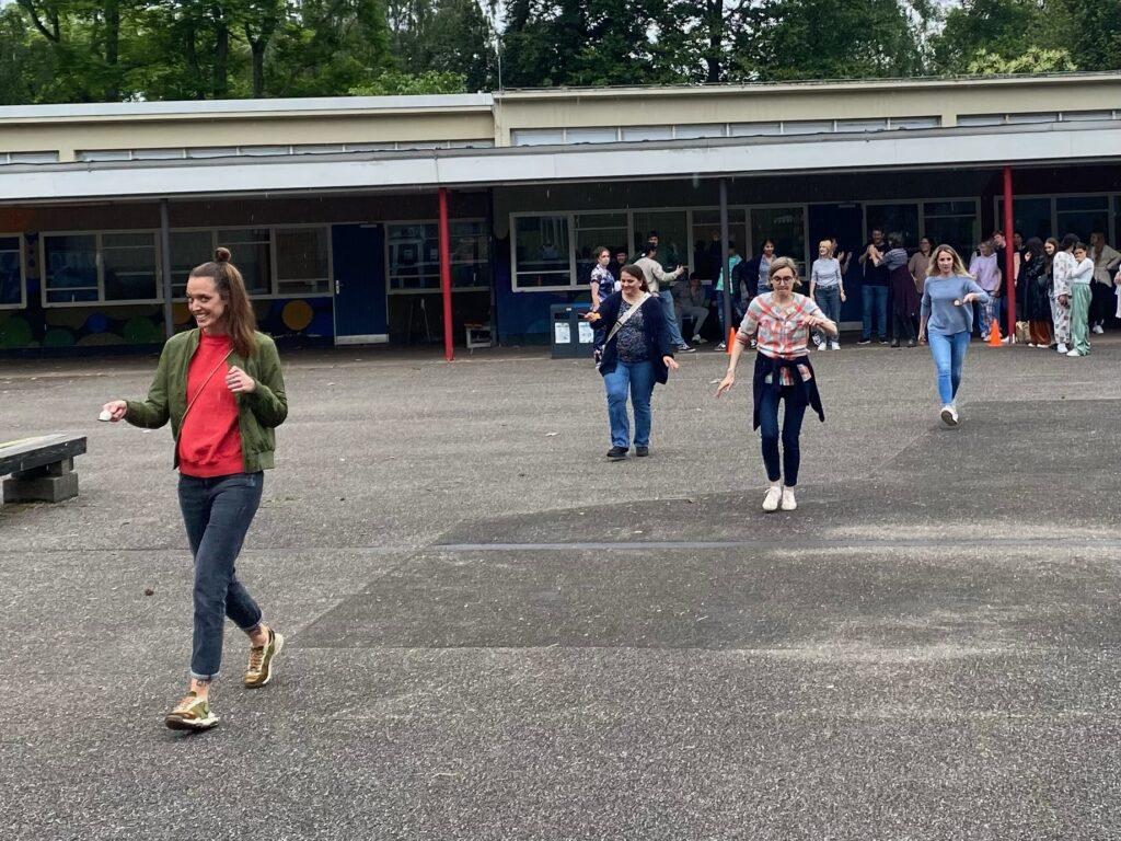 Den Spaßtag haben sich unsere SchülerInnen der Abgangsklassen 10 nicht nehmen lassen. Nachdem die jüngeren SchülerInnen unter großem Getöse verabschiedet waren, musste das Lehrerkollegium Geschicklichkeit, Kraft und Schnelligkeit beweisen und wir haben uns wacker geschlagen.